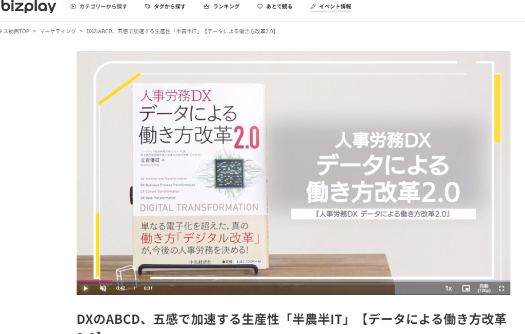 弊社代表が2021年3月上梓した書籍「人事労務DX データによる働き方改革2.0」が1年半以上経過していますが、日経BP系のWebメディア「bizplayチラヨミ」の取材を受けて、改めて書籍紹介として、ビデオがオンエアされました!